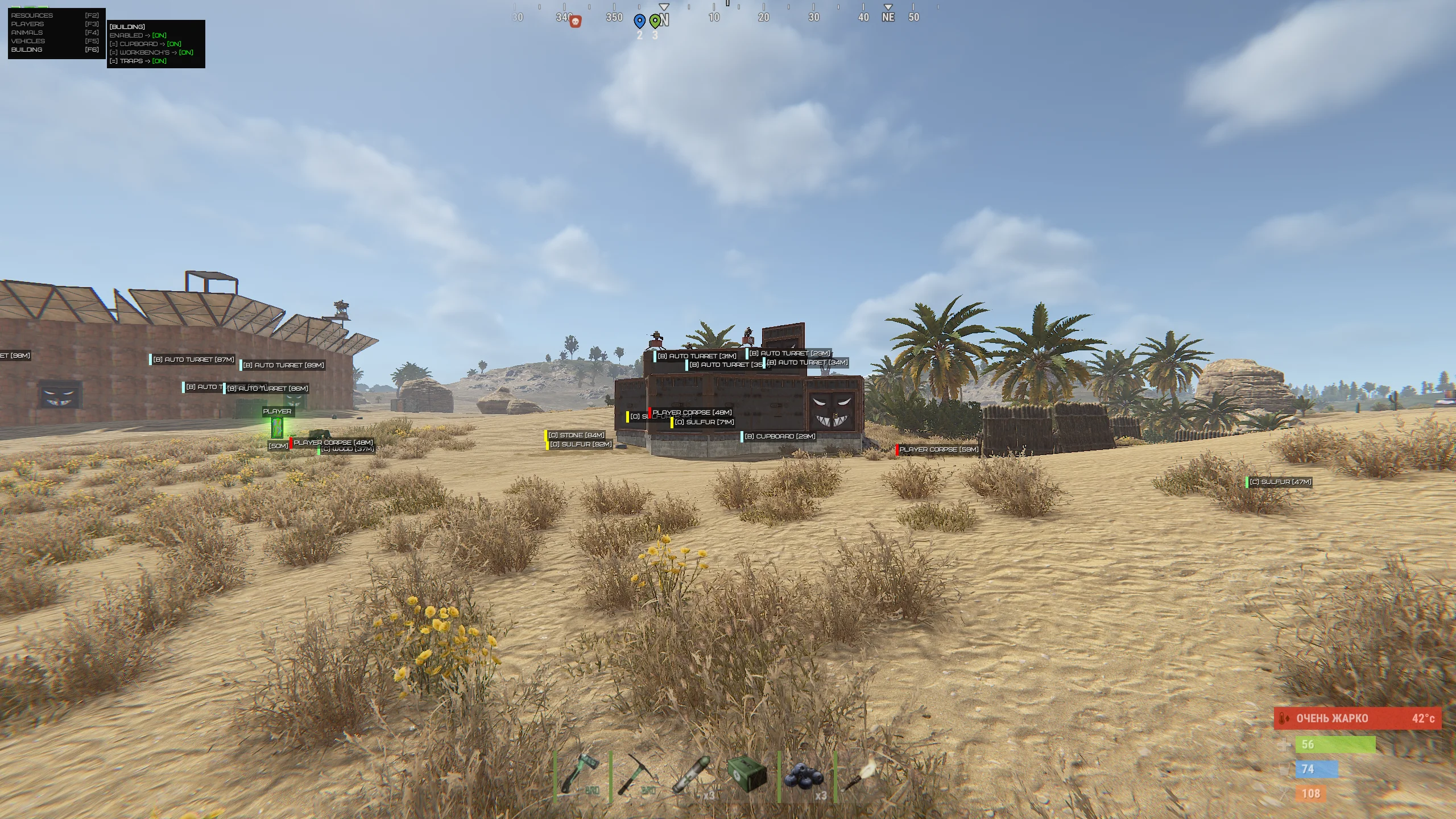 Phoenix Rust ESP provides an expanded overview of events in the Rust world. Players, NPCs, animals, vehicles, loot containers, harvestable resources, and key environmental objects are displayed. This allows planning routes in advance, avoiding unwanted encounters, and optimizing farming.
